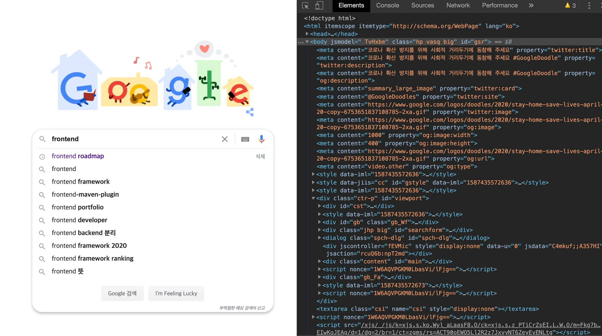 ๋๋ค. ํ ๋จ์ด๋ฅผ ๊ฐ์ ธ์ค๊ธฐ ์ํด ๋ฌธ์ ์ ์ฒด๋ฅผ ์ค์บํด์ผ ํ๋๊น์. ์ค์ ๋ก ๊ฒ์์ฐฝ๋ง์ผ๋ก ๊ฐ๋จํ ui๋ฅผ ๊ฐ์ง ๊ตฌ๊ธ ๊ฒ์ํ๋ฉด์ ์๋์ฒ๋ผ ์๋ง์ html ํ๊ทธ๋ค๋ก ์ด๋ฃจ์ด์ ธ ์์ต๋๋ค.