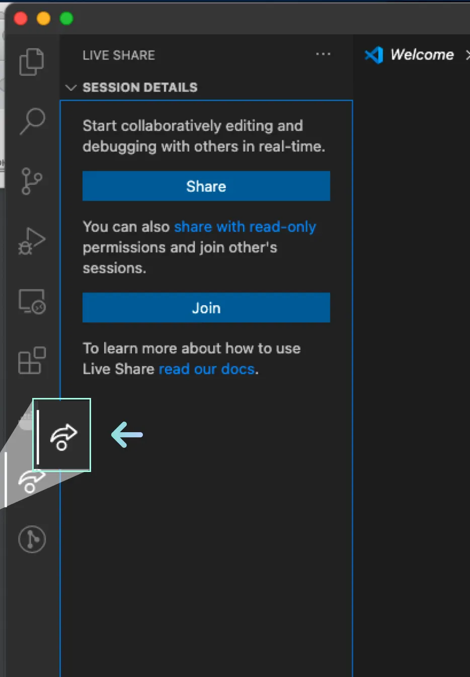 Github로 로그인 하는 것을 추천드립니다. vscode 하단에 Live Share를 클릭하면 로그인을 하실 수 있습니다.